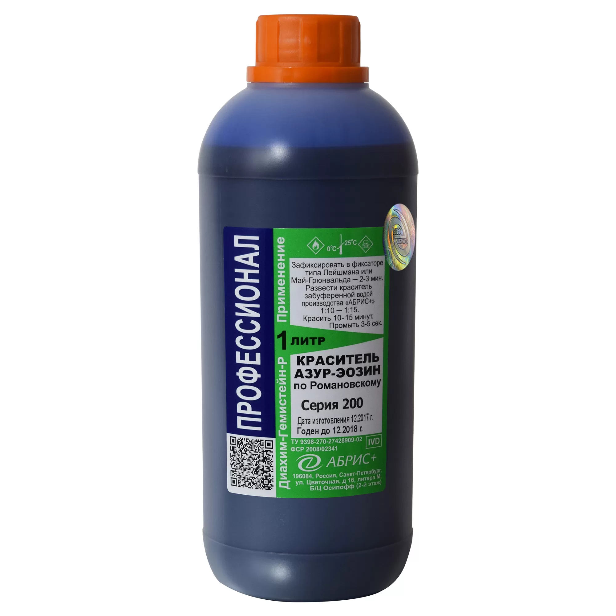 - Краситель представляет собой 0,76 % раствор сухого азур-эозина по Романовскому (Гимза азур-эозина метиленового синего) в метаноле и глицерине, в соотношении 1:1.