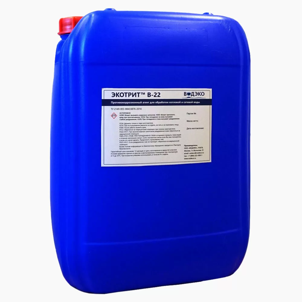 - отличие от традиционного метода обескислороживания питательной воды с использованием сульфита натрия, активные компоненты реагента ЭКОТРИТ В-22 вступают во взаимодействие с кислородом уже при комнатной температуре, а в нагретой до 70°С воде время реакции составляет не более 3-5 секунд;