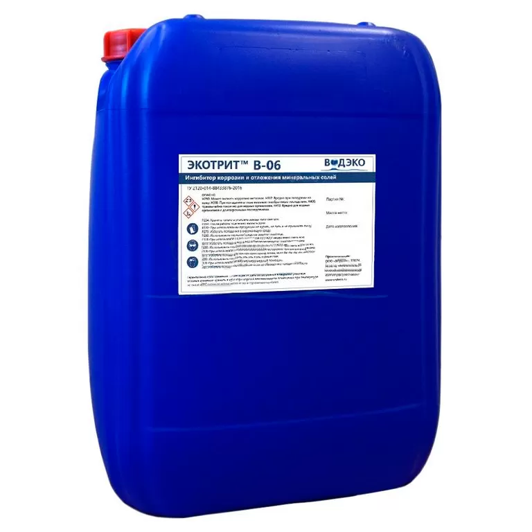 - Реагент ЭКОТРИТ™ В-06 представляет собой водный раствор комплексных соединений цинка с фосфоновыми кислотами.