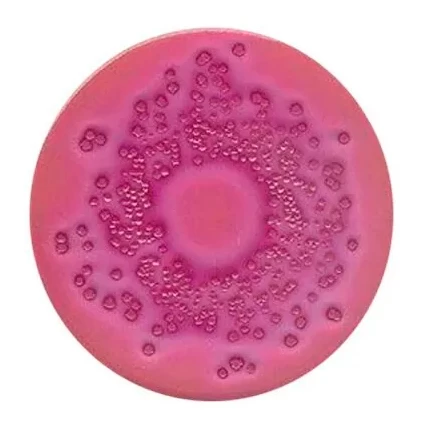 - Глюкоза расщепляется с образованием кислоты, при этом цвет индикатора меняется на красный, образуются зоны преципитации желчных кислот вокруг колоний.