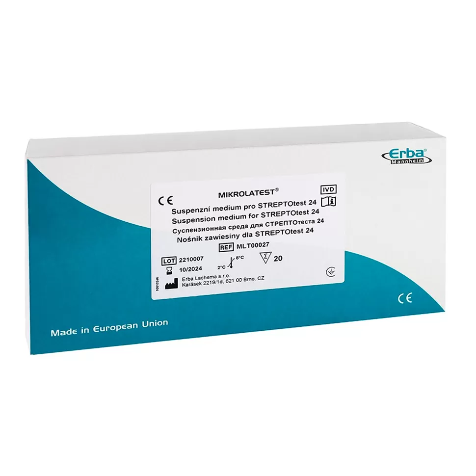 - Для 1 упаковки СТРЕПТОтеста 24 достаточны 2 упаковки (2х20 пробирок) суспензионной среды.