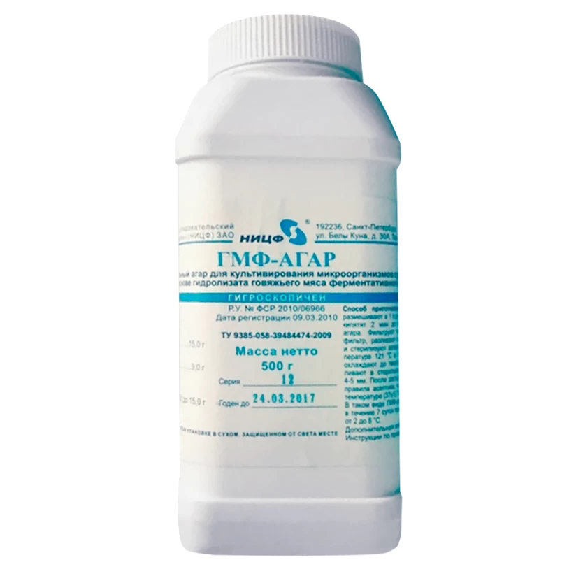 - Питательный агар сухой на основе гидролизата говяжьего мяса ферментативного (ГМФ–агар).