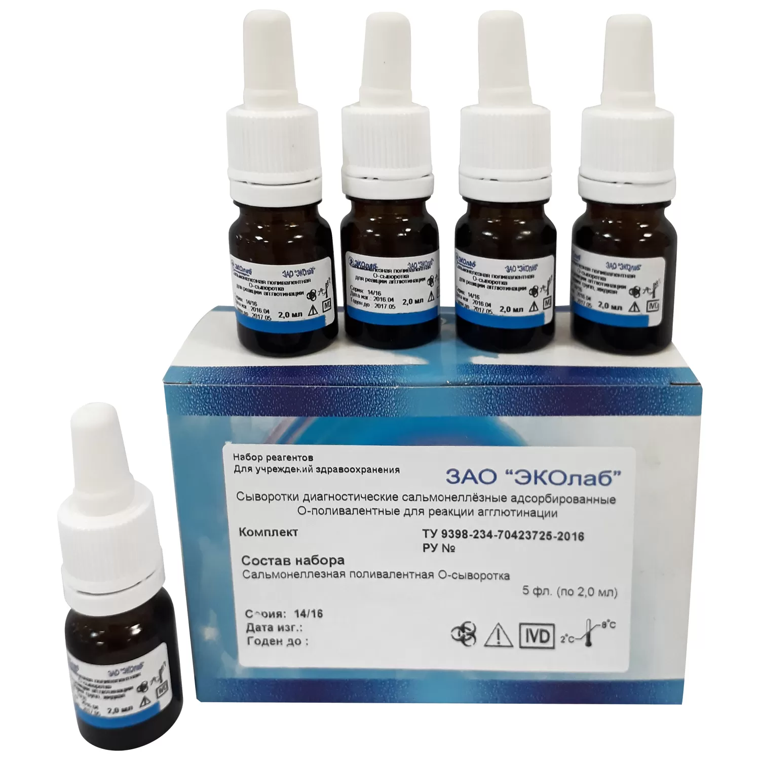 - Комплект № 1 - жидкая иммунная адсорбированная сыворотка крови кролика или барана, содержащая О-агглютинины против антигенов 1; 2; 3, 4; 5; 6.1; 6.2; 7; 8; 9; 10; 12, Vi; инактивированная.