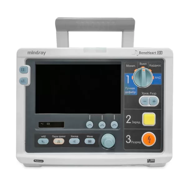 - Дефибриллятор-монитор Mindray BeneHeart D3 (с кардиостимуляцией) — легкое и портативное устройство, которое объединяет в себе функции ручного дефибриллятора, монитора, автоматического наружного дефибриллятора (АНД) и кардиостимулятора.