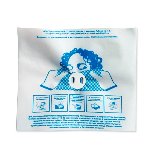 Устройство-маска полиэтиленовая с обратным клапаном для искусственной вентиляции легких разового использования «Рот-устройство-рот» предназначена для проведения искусственного дыхания методом «рот-в-рот» у взрослых и детей вне медицинских учреждений. В упаковке 50 шт.