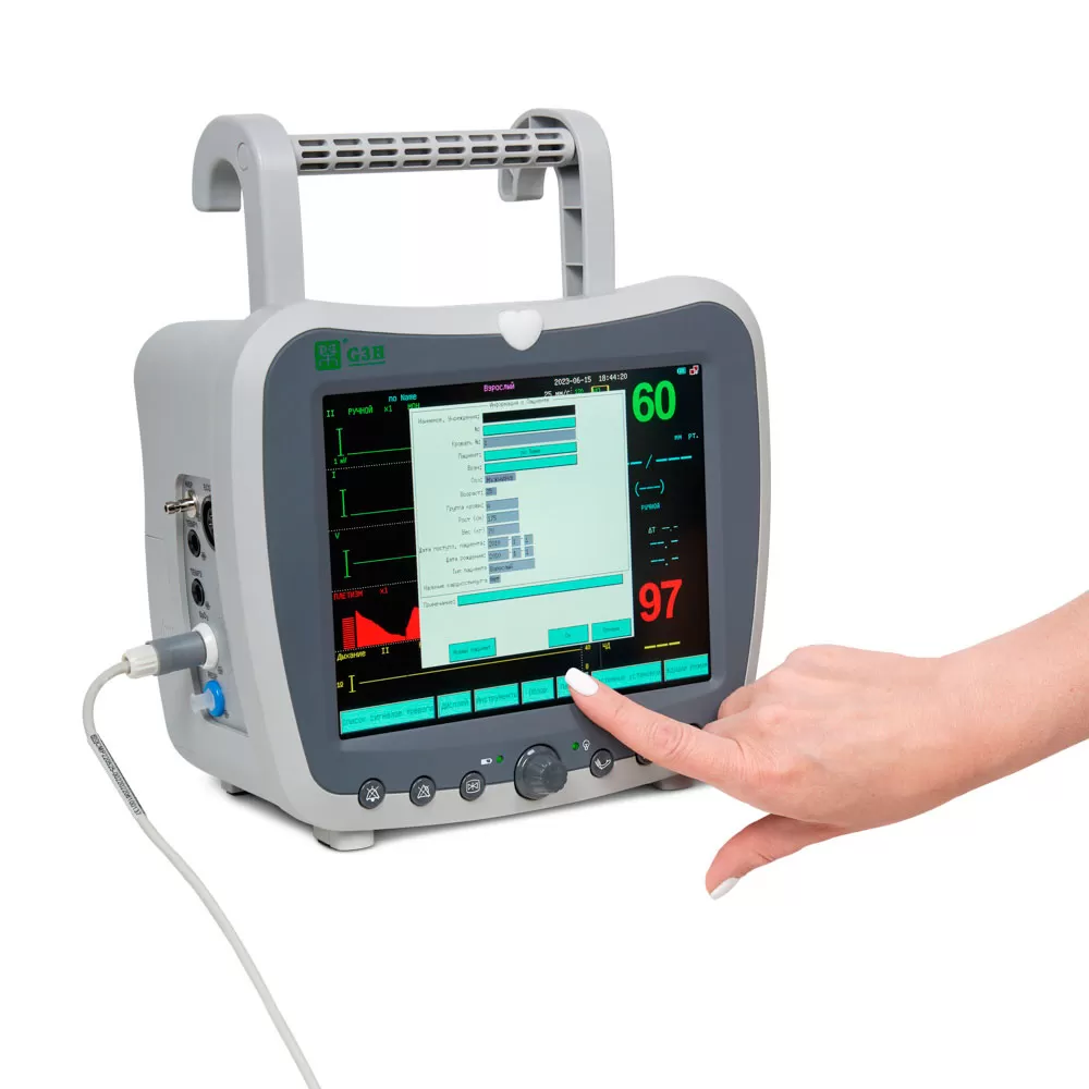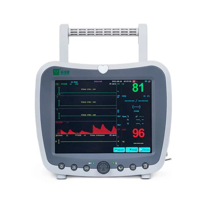 - для непрерывного наблюдения и отображения физиологических параметров пациента, их записи и хранения в базе данных монитора.