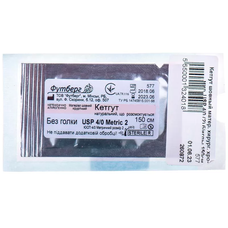 Натуральный шовный рассасывающийся материал, изготовленный из очищенной соединительной ткани подслизистого слоя тонкого кишечника овец или серозного слоя кишечника крупного рогатого скота. Область применения: стягивание мягких тканей, наложения лигатур, но не для работы на сердце, сосудах и тканях нервной системы. Применение данных шовных материалов противопоказано пациентам, имеющим аллергическую реакцию на их компоненты. Длина 75 см. Без иглы. В комплекте 25 шт.