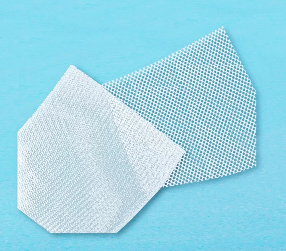 - Разработанной оптимальным образом пространственной структурой, при которой величина пор способствует быстрому прорастанию соединительной ткани, одновременно сокращает период заживления, с образованием гибкого рубца;