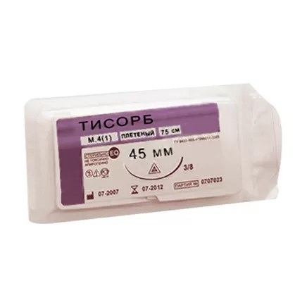 - Синтетический шовный материал Тисорб 910 представляет собой синтетическую рассасывающуюся плетеную нить на основе полиглактина 910 (лактид 10%, гликолид 90%) покрытие из поликапролактона и стеарата кальция.
