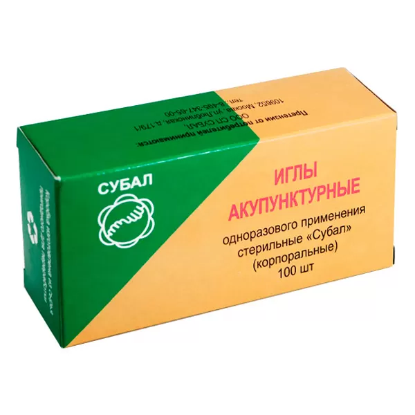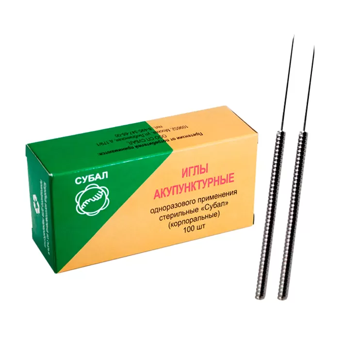 - Иглы корпоральные "Субал" 0,25x40 мм с направителем с ручкой.