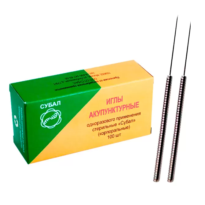 - Иглы корпоральные "Субал" 0,2x8 мм с направителем с ручкой.