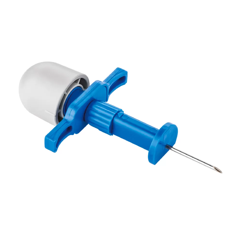 - Игла с трехгранной заточкой обеспечивает максимально быстрый и безопасный проход через костную ткань.