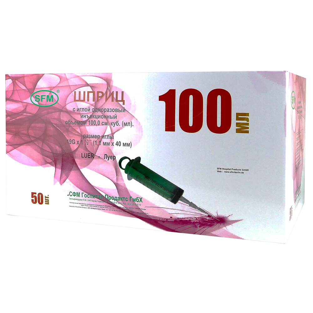 - Шприц объемом 100 мл однократного применения с приложенной иглой.