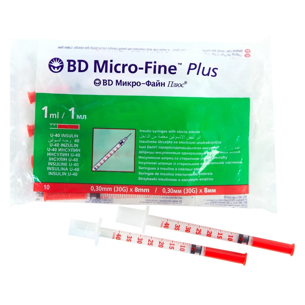 - BD Микро-Файн Плюс® – одноразовые инсулиновые шприцы с трехгранной заточкой.