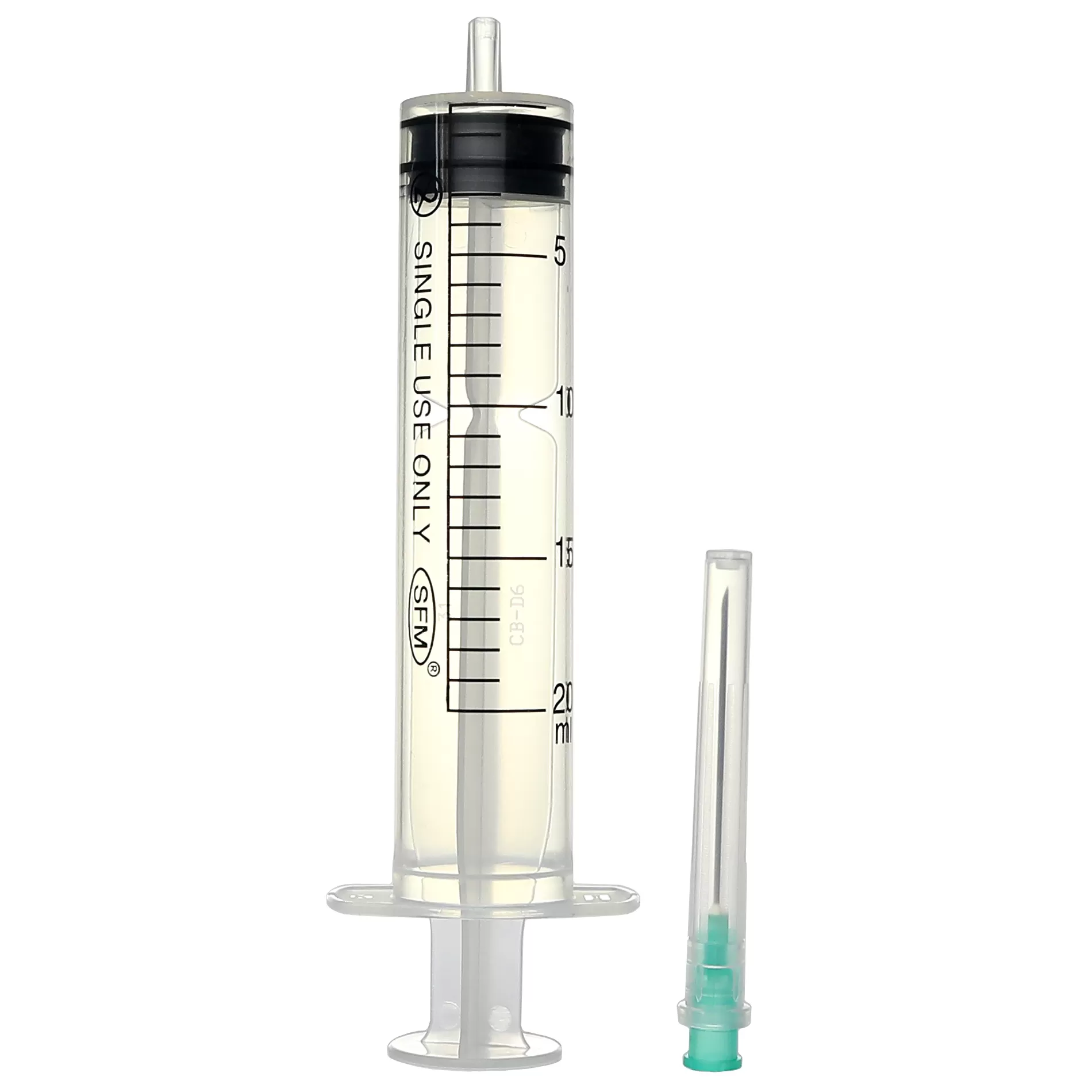 Шприцы трехкомпонентные одноразовые в аптечных упаковках от 2 до 10 мл изготовлены с коаксиальным (по центру) расположением крепления иглы, шприц 20 мл поставляется с креплением сбоку.