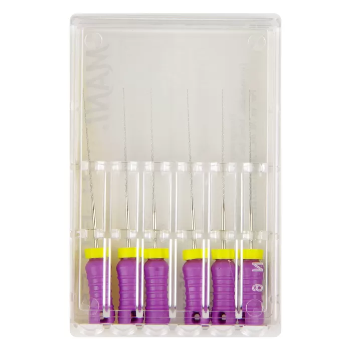 Ручной режущий стоматологический эндодонтический инструмент со спиральной нарезкой рабочей части. Материал рабочей режущей части - нержавеющая сталь, материал рукоятки – пластик (полибутилентерефталат).