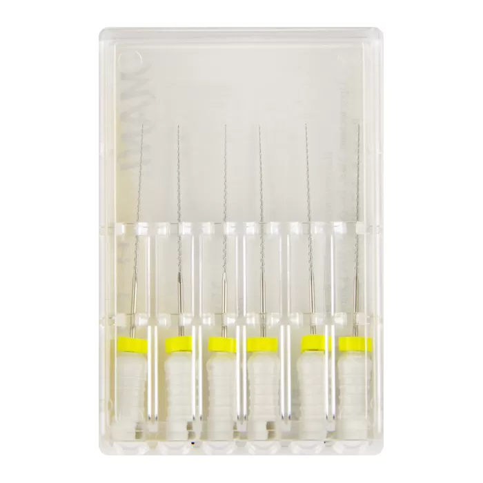 Ручной режущий стоматологический эндодонтический инструмент со спиральной нарезкой рабочей части. Материал рабочей режущей части - нержавеющая сталь, материал рукоятки – пластик (полибутилентерефталат).