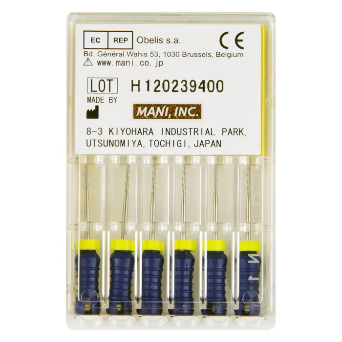 Ручной режущий стоматологический эндодонтический инструмент со спиральной нарезкой рабочей части. Материал рабочей режущей части - нержавеющая сталь, материал рукоятки – пластик (полибутилентерефталат).