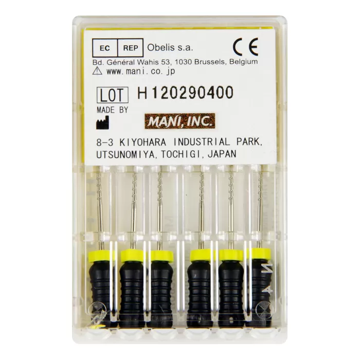 Ручной режущий стоматологический эндодонтический инструмент со спиральной нарезкой рабочей части. Материал рабочей режущей части - нержавеющая сталь, материал рукоятки – пластик (полибутилентерефталат).