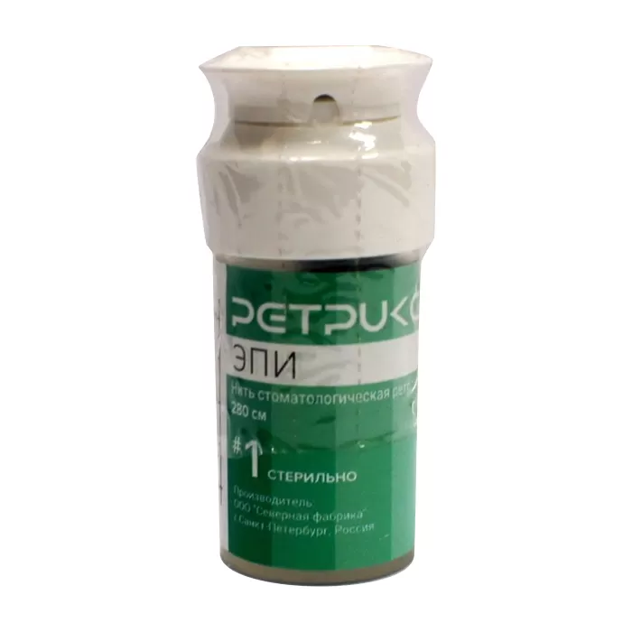- Пропитана эпинифрина гидрохлоридом в дозе 0,2 мг на 1 линейный см.