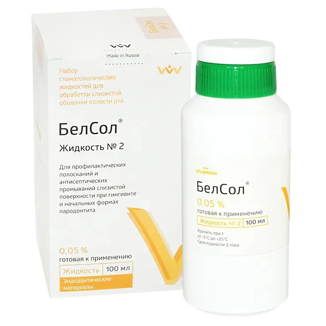 - Жидкость №2 – содержит хлоргексидина биглюконат, антисептик широкого спектра действия, активный в отношении грамположительных и грамотрицательных бактерий и сохраняющий антисептические свойства при непосредственном контакте с биологическими жидкостями (кровью или гноем), снижающий образование зубного налёта, эффективный в противобляшковом действии.
