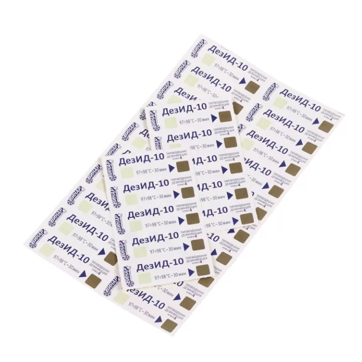 - липкий слой на обратной стороне индикатора облегчает его закрепление на дезинфицируемых упаковках;