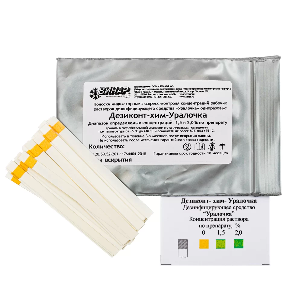 - Неверный состав раствора снижает эффективность обработки или увеличивает риск токсичности. Поэтому важно использовать индикаторы, которые быстро и точно определяют концентрацию раствора, обеспечивая безопасность и эффективность дезинфекции.