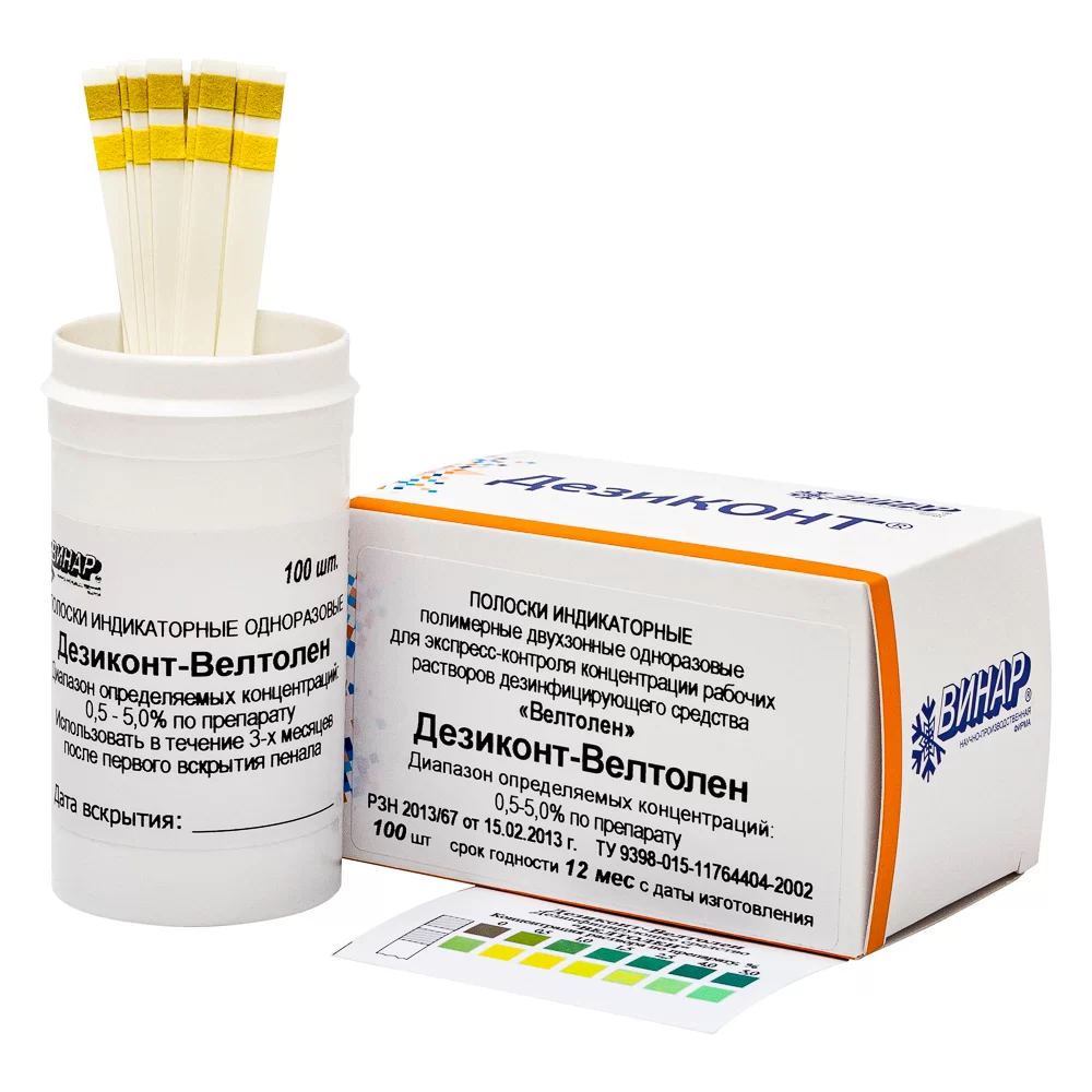 - Индикаторы предназначены исключительно для определенного дез.раствора, в данном случае для раствора дезинфицирующего средства Велтолен.
