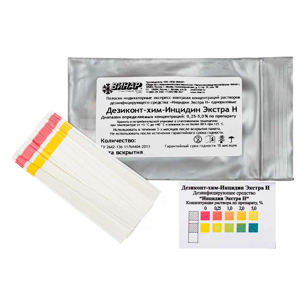 - Индикаторы предназначены исключительно для определенного дез.раствора, в данном случае для раствора дезинфицирующего средства Инцидин Экстра Н.