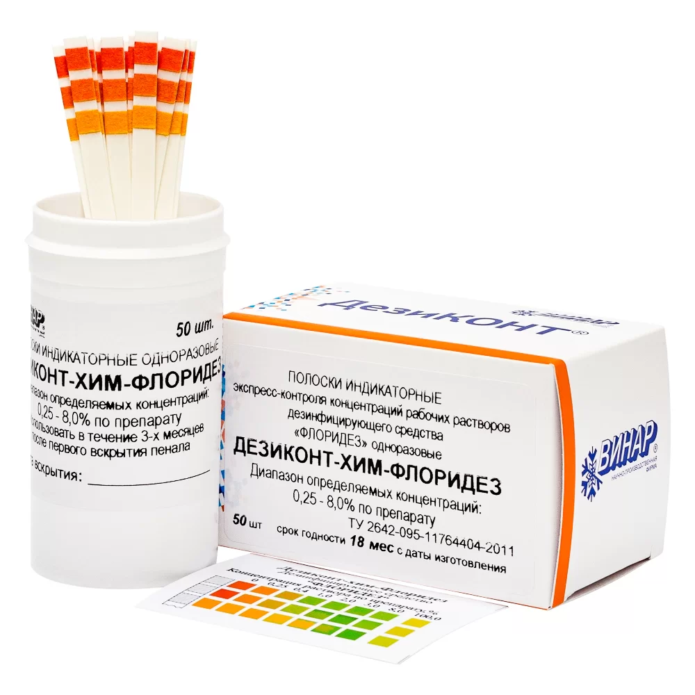 - Каждый индикатор предназначен индивидуально для определённого дезинфицирующего раствора.