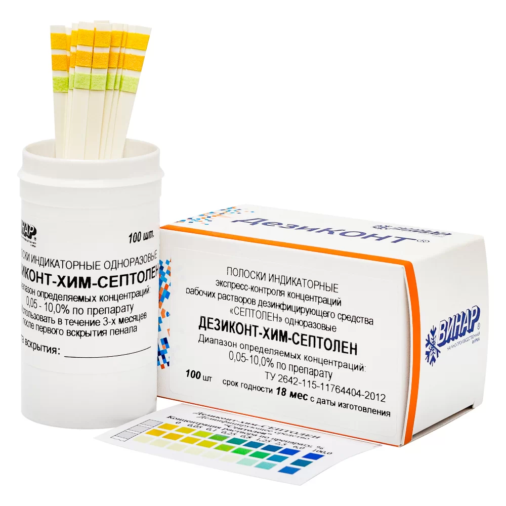 - Неверный состав раствора снижает эффективность обработки или увеличивает риск токсичности. Поэтому важно использовать индикаторы, которые быстро и точно определяют концентрацию раствора, обеспечивая безопасность и эффективность дезинфекции.