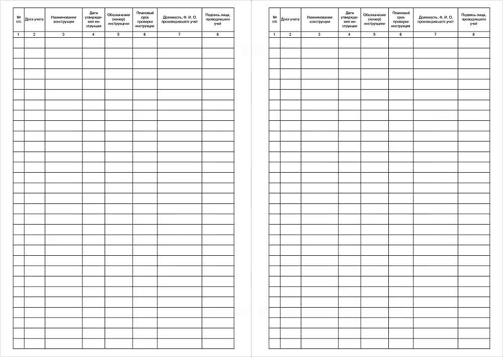 Графы журнала Журнала учета инструкций по охране труда для работников: