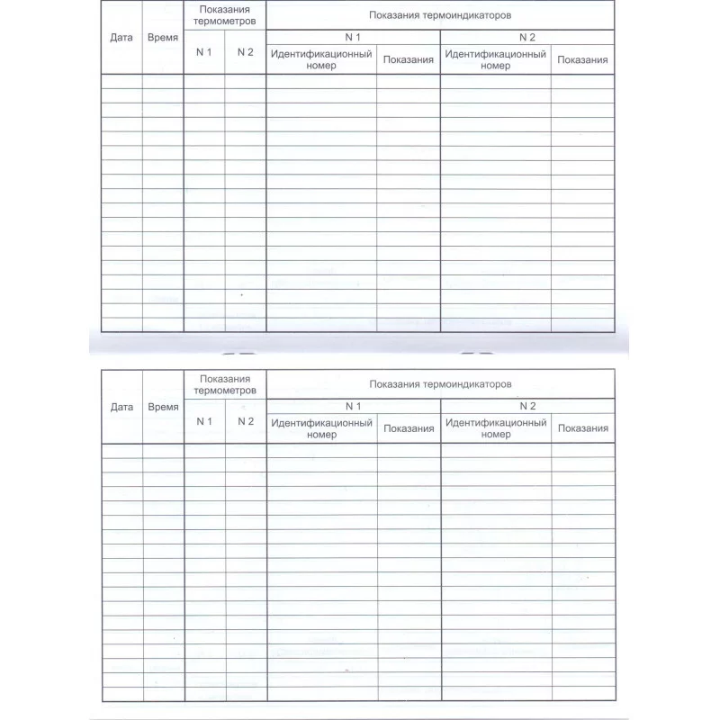 - Показания термоиндикаторов № 2;