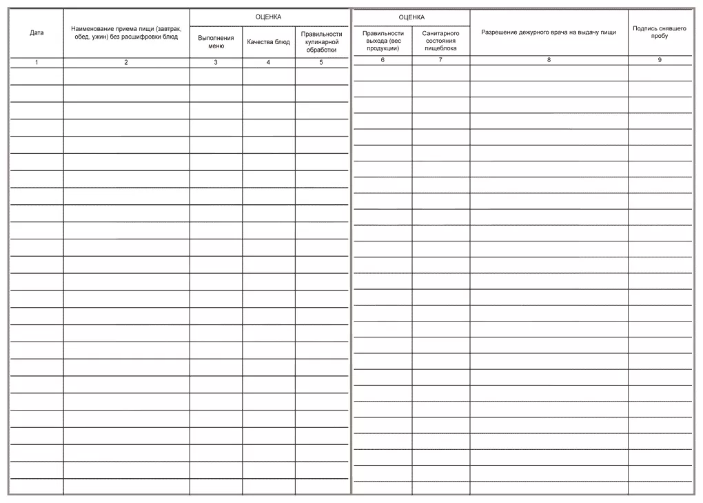 - Оценка выполнения меню, качества блюд, правильности выхода (вес продукции), санитарного состояния пищеблока.