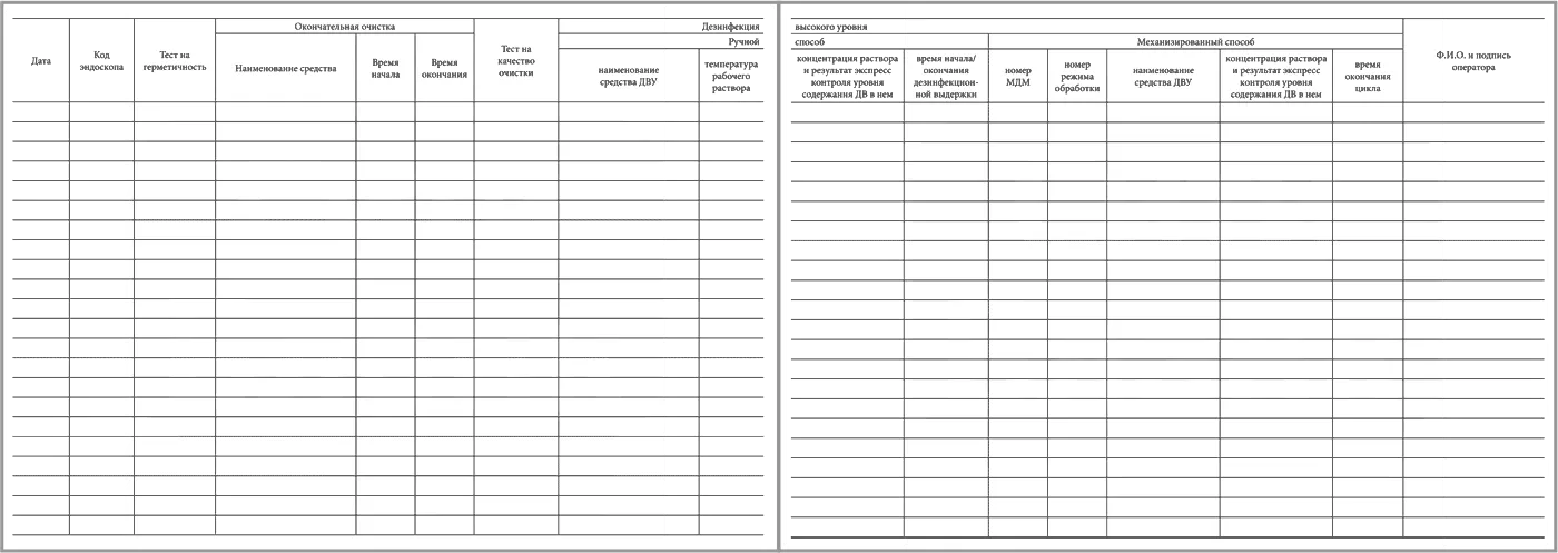 Графы для заполнения Журнала контроля обработки эндоскопов для нестерильных вмешательств: