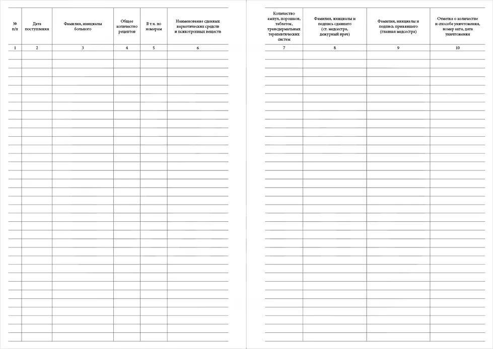 - Фамилия, инициалы и подпись принявшего (главная медсестра)