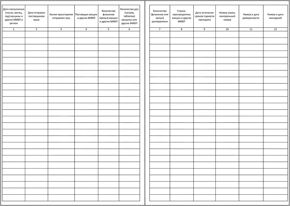 - Дата поступления (число, месяц, год) вакцины и других МИБП в регион