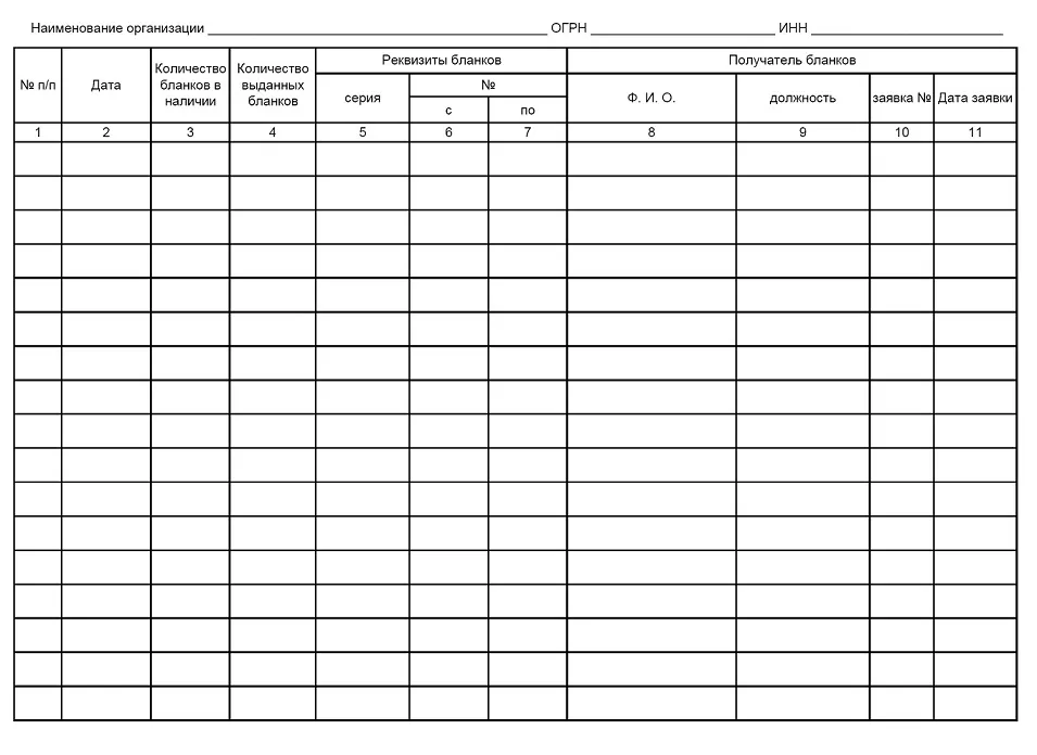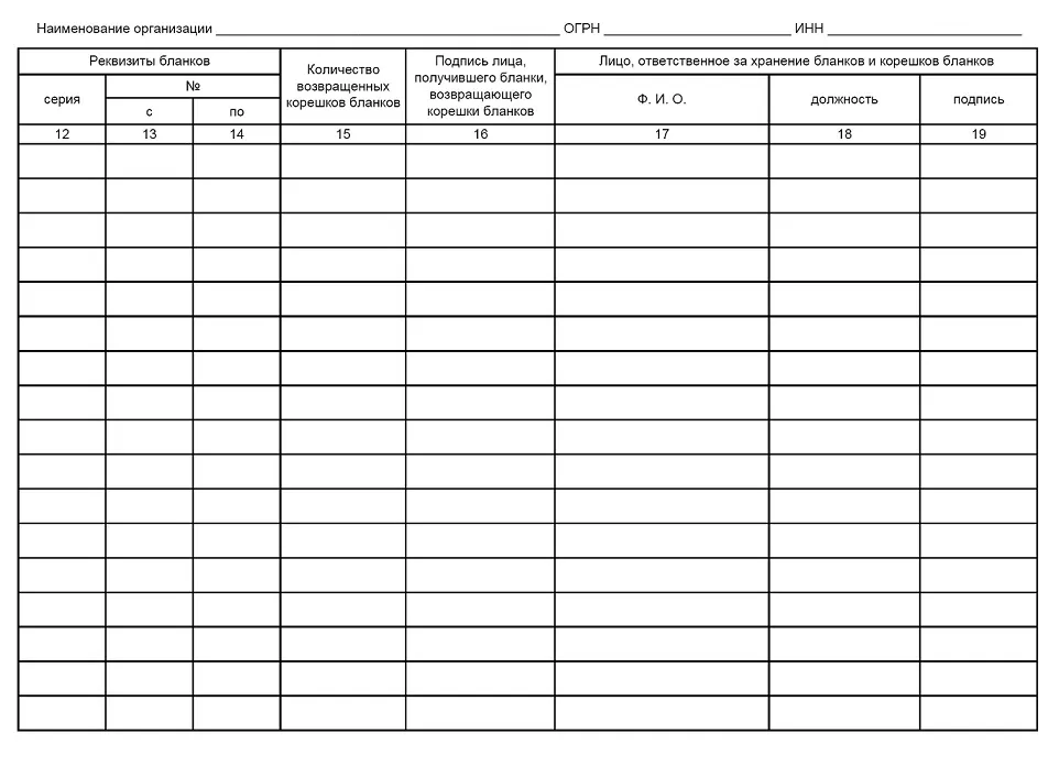 16. Подпись лица, получающего бланки, возвращающего корешки бланков;