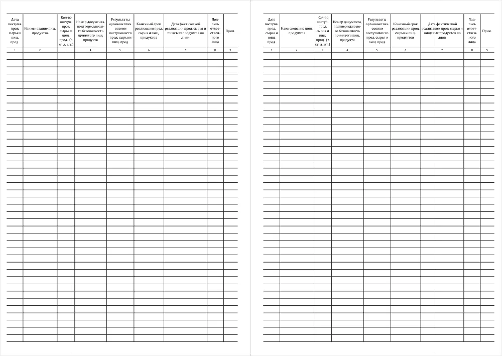 Графы для поступления Журнала бракеража поступающего продовольственного сырья и пищевых продуктов: