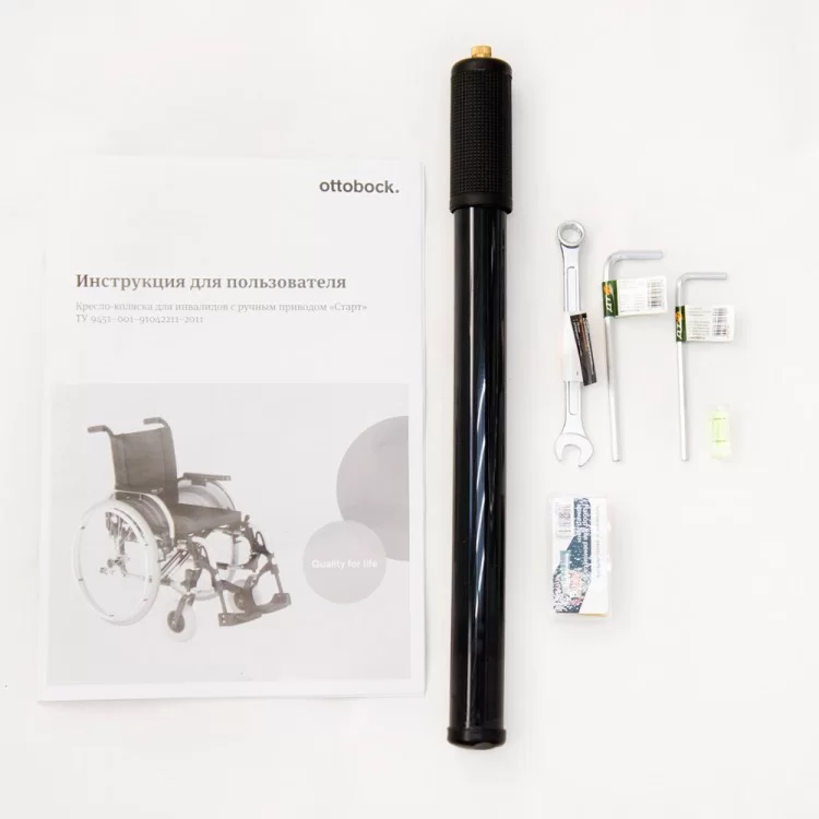 - В комплекте антиопрокидывающее устройство для повышенной безопасности пользователя во время движения и набор инструментов.