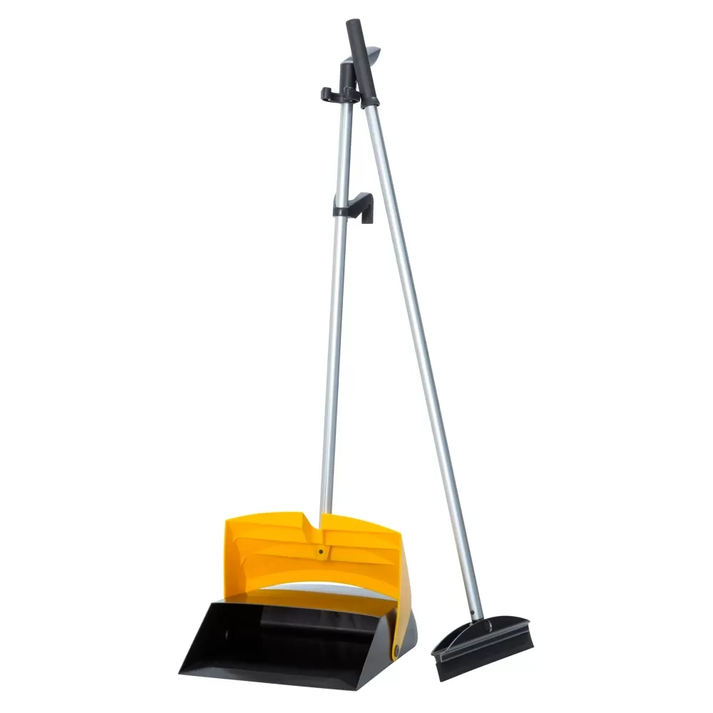 - Комплект включает в себя совок с крышкой и сгон с длинной рукояткой, позволяет быстро, не наклоняясь собрать мусор.