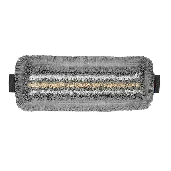 - высокоэффективная структура мопа: белые микроволоконные нити отлично отмывают, серые комбинированные нити оттирают и удерживают грязь, бежевые нити из хлопка впитывают много грязи и влаги;