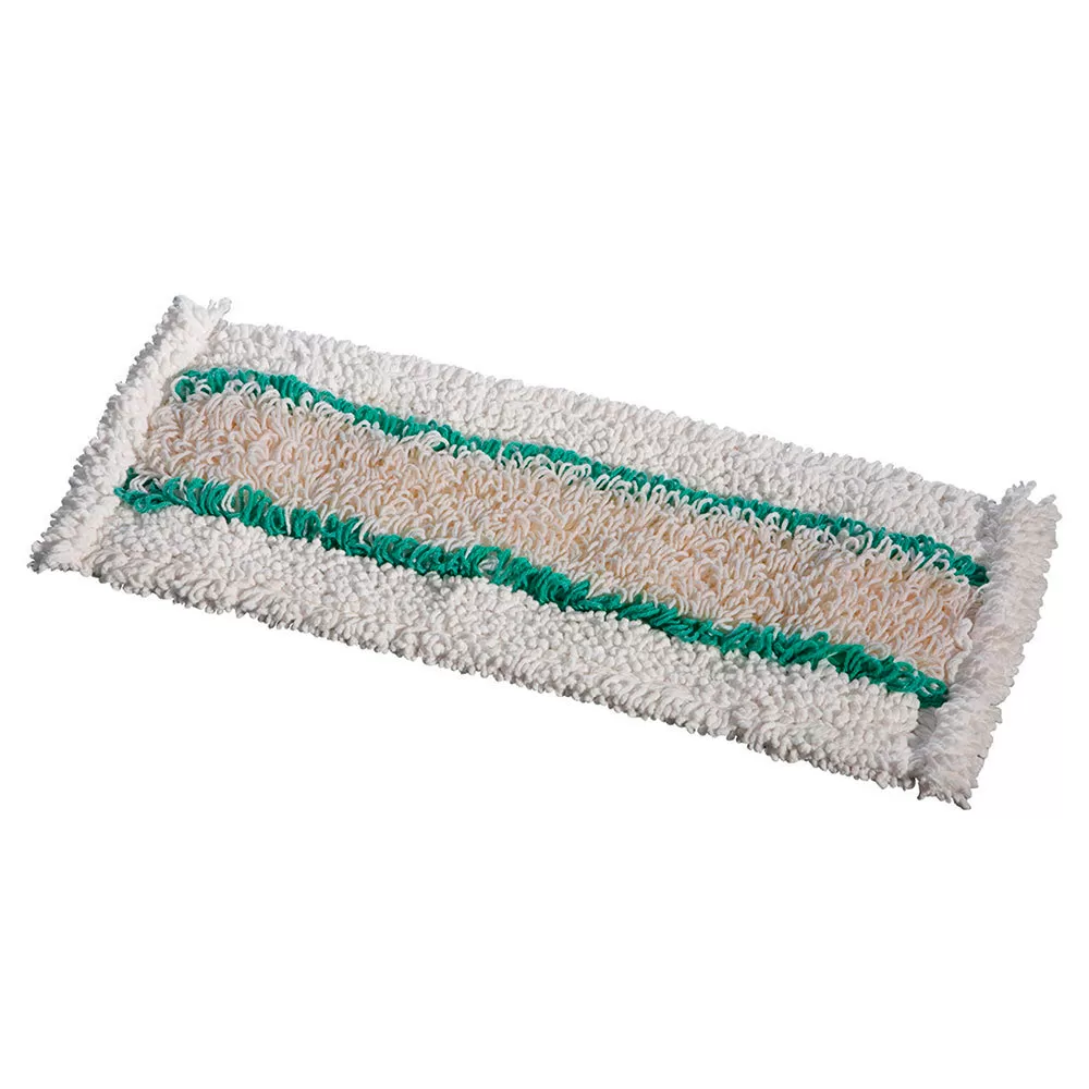 - Расположение и комбинация петель из полиэфирного волокна/хлопка по центру и микроволокна по краям, позволяет оптимально удалять грязь, а влагу перенаправлять от внешнего края мопа к центру, не оставляя грязных разводов.