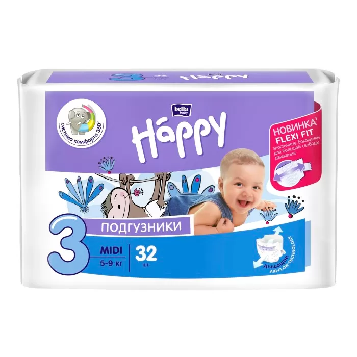 - Благодаря дышащему внешнему слою (технология Air Flow Technology), подгузник обеспечивает постоянный доступ воздуха к коже малыша, защищая его от опрелостей.