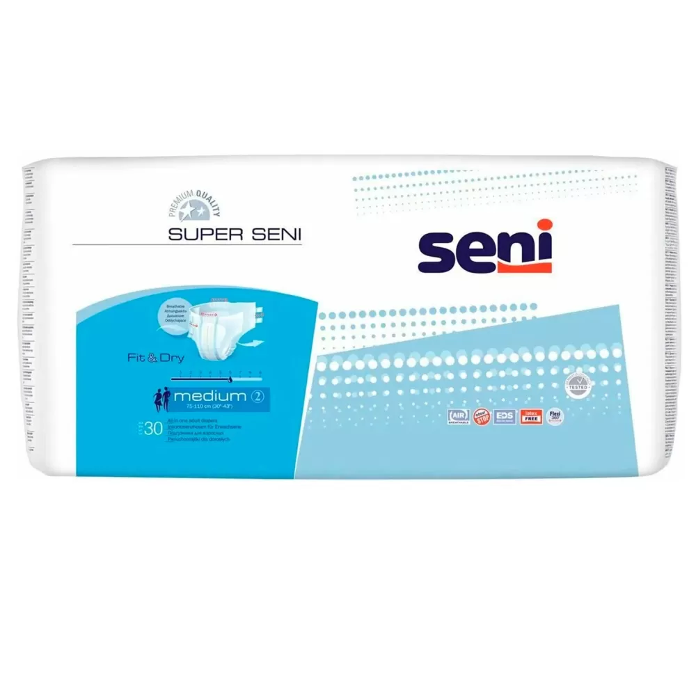 - Классические «дышащие» подгузники для взрослых SUPER SENI – хорошая и проверенная защита при средней и тяжелой степени недержания.
