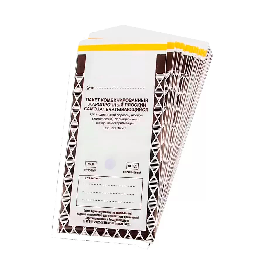 - Пакеты предназначены для упаковывания медицинских изделий перед паровой, воздушной, этиленоксидной и радиационной стерилизацией с целью сохранения стерильности этих изделий после стерилизации во время их транспортировки и хранения до использования по назначению.