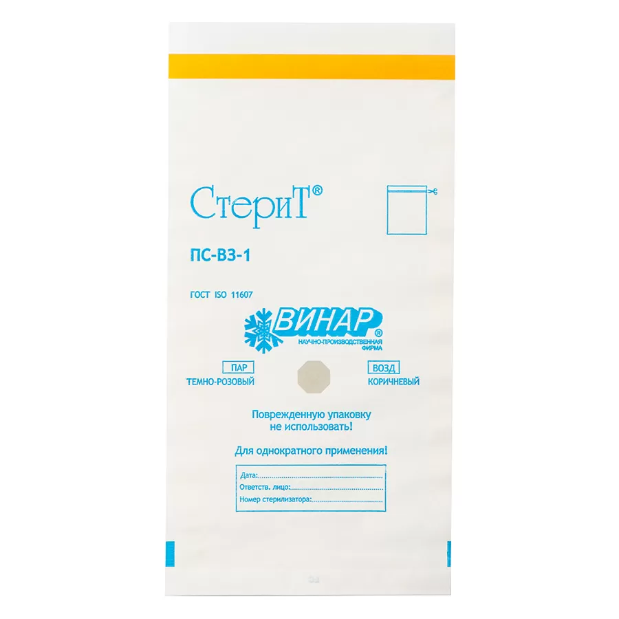 - На внешней стороне пакета нанесены индикаторы 1 класса, позволяющие отличить простерилизованные изделия от нестерилизованных;