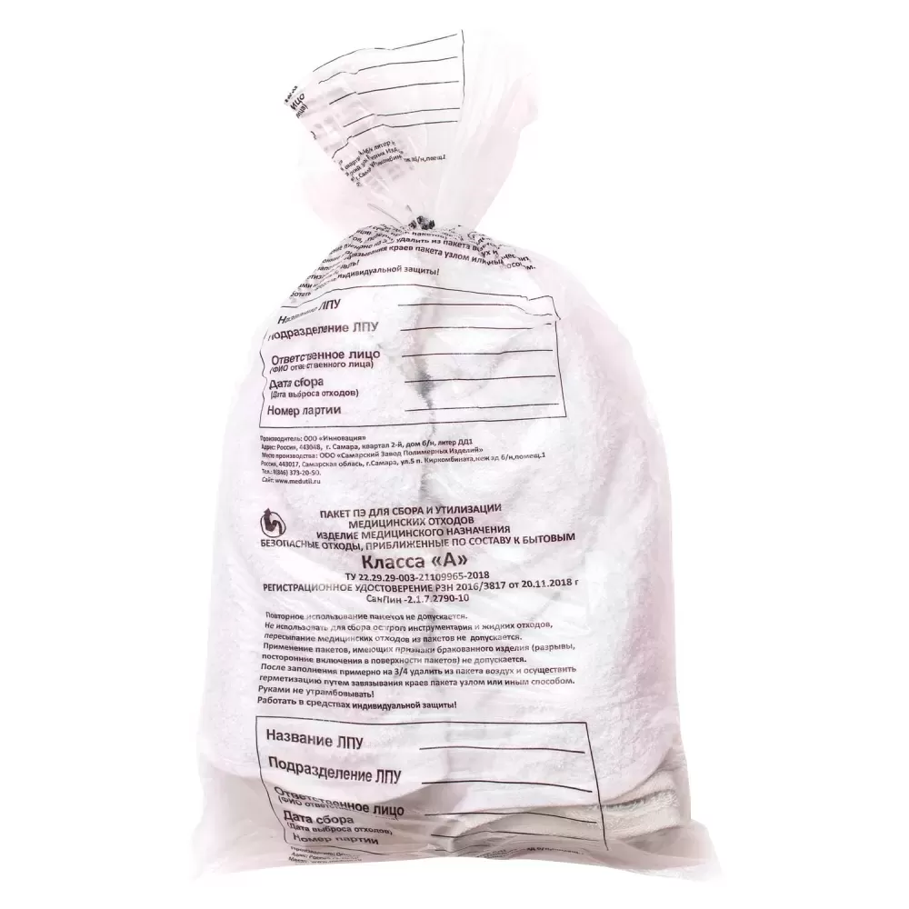 Класс А (неопасные) - отходы, не имеющие контакта с биологическими жидкостями пациентов, инфекционными больными, нетоксичные отходы.