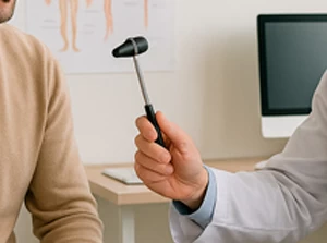 - Проводит обследование нервной системы — оценивает рефлексы, чувствительность, координацию движений, мышечную силу.