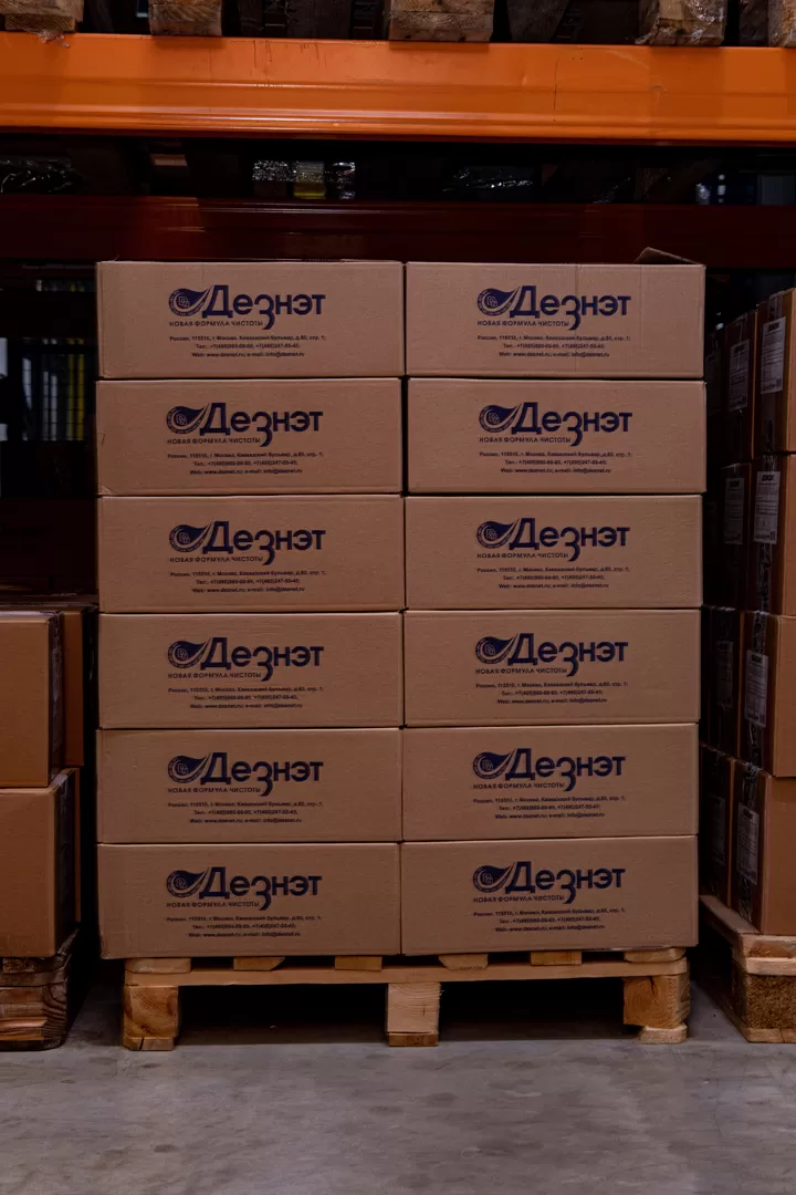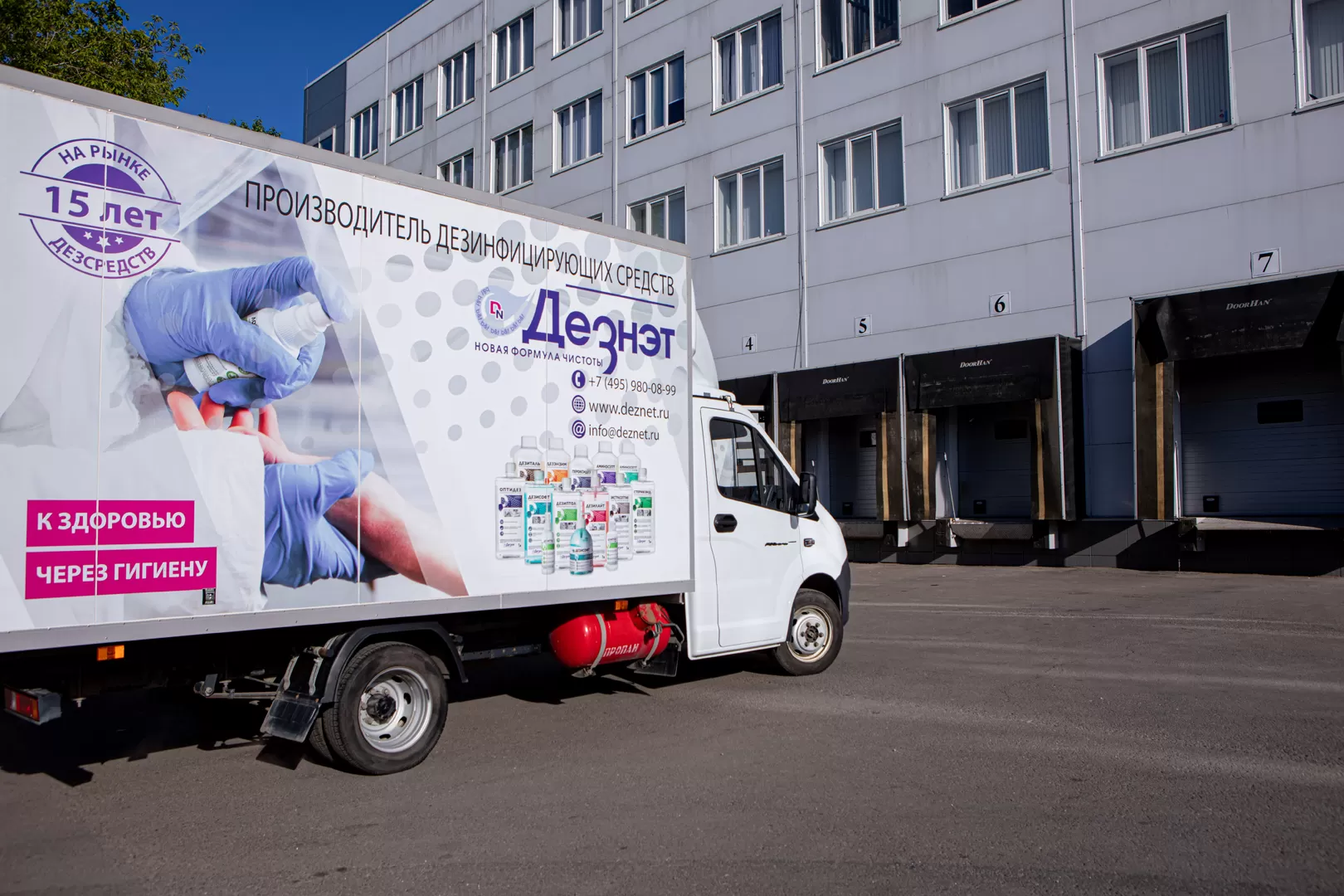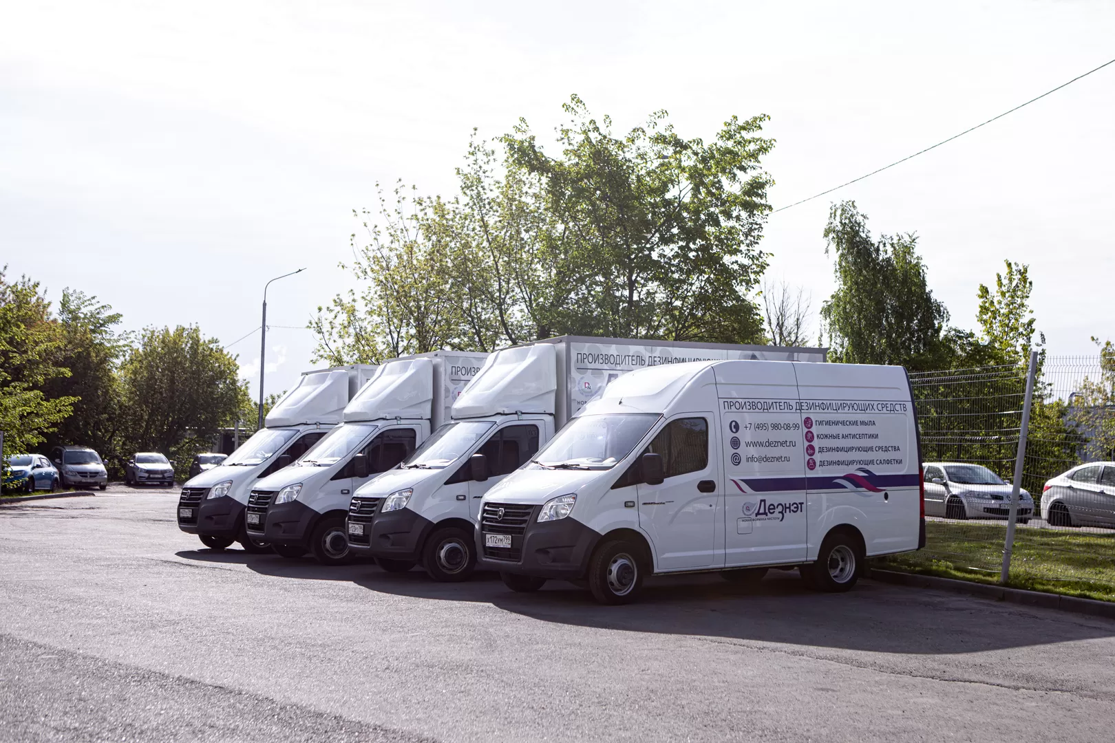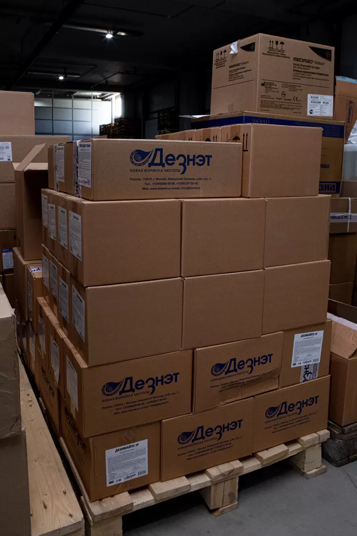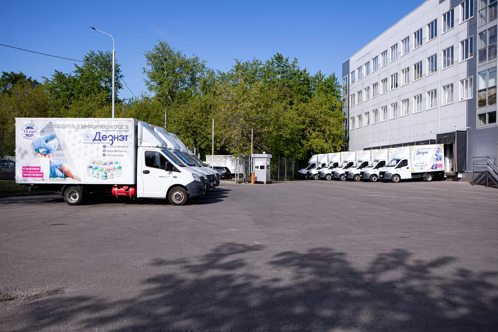 Наш склад находится в Москве на Кавказском бульваре, там же расположен главный офис компании. Отсюда можно забрать товар самовывозом или отправить нашей курьерской службой: у «Дезнэт» свой автопарк, мы развозим в том числе оптовые заказы. Производственные мощности сосредоточены в Москве. Представительства компании также есть в Санкт-Петербурге, Екатеринбурге и Сочи.